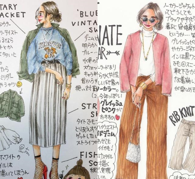 春季職場時髦氣質插畫穿搭示範